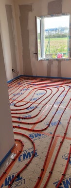Pose d'un plancher chauffant 4 départs dans une extension de maison, à saint Genis sur Guiers